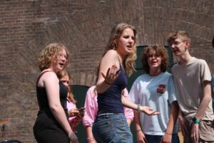 Met de kindertheatergroep 10+ werken we naar een leuke voorstelling met theatertekst welke we spelen op zaterdag 30 mei 2026 op Werk aan het Spoel. Maar ook doen we allerlei theateroefeningen om van alles uit proberen. Er zijn zoveel mogelijkheden om je lichaam en stem in te zetten voor ontelbaar veel rollen.