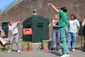 De 12+ groep gaat verdiepen op het gebied van spel, en dan lekker uitvergroot. Ook maken we een (tekst) productie die we aan het eind van de cursus voor publiek spelen op Werk aan het Spoel op zaterdag 30 mei 2026. Hoe tof is dat!